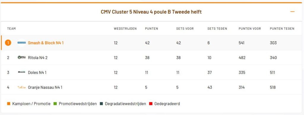 Na nog 3 spannende wedstrijden vandaag is CMV-4 kampioen geworden! Ze begonnen met een kleine voorsprong op de nummer 2 Ritola en die wisten ze vast te houden. In een rechtstreeks duel werd het 2-2 en dat was genoeg om het kampioenschap binnen te slepen! Van harte gefeliciteerd meiden!