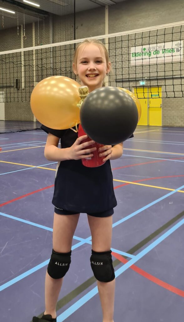 Esmee traint in ons CMV team (Cool Moves Volleybal). Binnen dit team hebben we één wedstrijdteam op niveau 4. Esmee, Amélie en Lois willen volgend seizoen graag een nieuw wedstrijdteam vormen en kunnen nog aanvulling gebruiken. Ben je +/- 9 jaar oud en lijkt het je leuk om te volleyballen meld je dan via het contactformulier aan voor een proeftraining. Wij hopen dat Esmee, en natuurlijk alle nieuwe leden, een fantastische tijd bij onze vereniging zullen hebben.