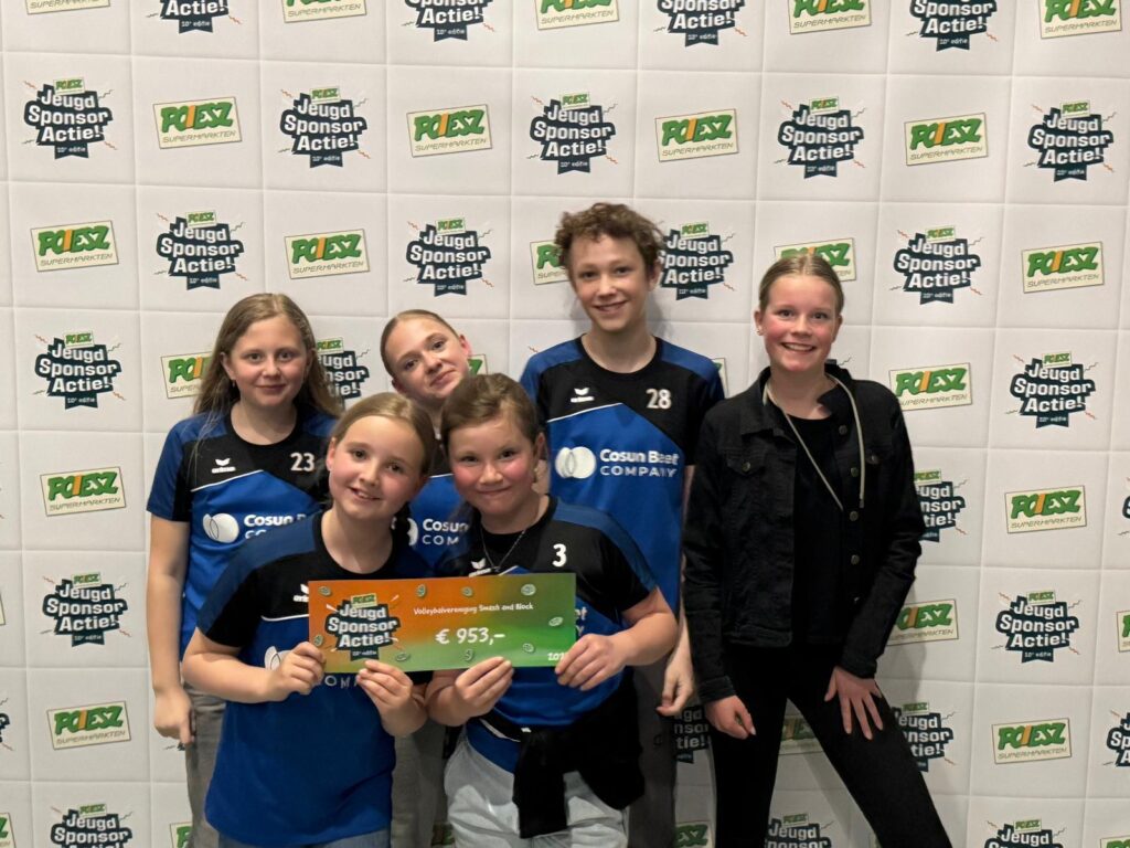 Ook dit jaar mochten we weer meedoen aan de Jeugd Sponsor Actie van de Poiesz. We hebben de aanbiedingen waarbij je extra munten kon krijgen met jullie gedeeld, en op zaterdag 15 maart hebben verschillende jeugdleden in de winkel gestaan om de kokers met munten te vullen. En het was de moeite waard! Op zaterdag 29 maart mochten we tijdens het Poiesz Gala in Leeuwarden een cheque van €953,- in ontvangst nemen. We hopen dat we volgend jaar opnieuw mee mogen doen. Aan de eerste voorwaarde voor deelname hebben we in ieder geval al voldaan: alleen wie tijdens het gala de cheque persoonlijk ophaalt, mag het jaar daarop weer meedingen naar deelname. Bedankt voor jullie hulp!